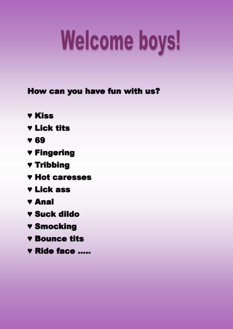 HI! we want you to join us in each session of our show to give you the greatest pleasure of your life, when you are ready you can enter to make yourself feel pleased, remember you are one click away from your happiness... we are waiting for you, kisse